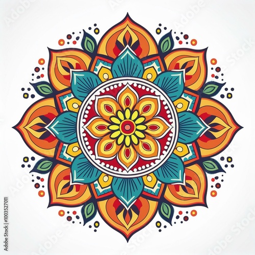Mandala art design also called rangoli, decorative elements on white background