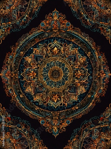 Mandala ornament template, featuring Ottoman and Arabic designs.