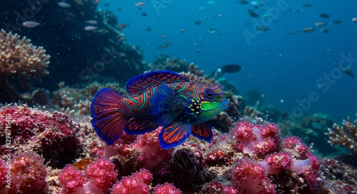 Mandarinfish in Iridescent Reef: Vivid Blue & Orange Art for Marine Wallpapers & Conservation