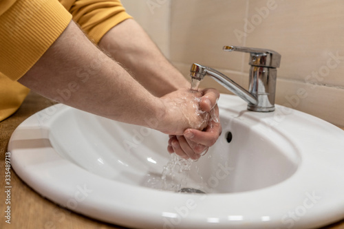 man, washing, bathroom, hand, hygiene, water, sink, hand, laundered, tap, clean, faucet, soap, cleaning, home, health, kitchen, care, closeup, white, wet, human, closeup, children, liquid