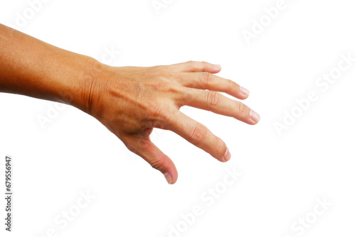 Man's hands making gestures on a white background