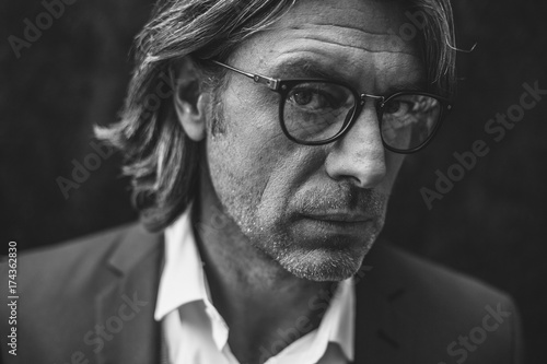 urban, suit, successful, success, stylish, studio, serious, senior, professional, portrait, person, 1, older, modern, man, male, looking at, photogenic, grey, goggles, face, expression, elegant, designer, closeup, posh, caucasian, businessman, business, black-and-white, alone, adult, 40, people, adult, 40s, grown-up, middle-aged