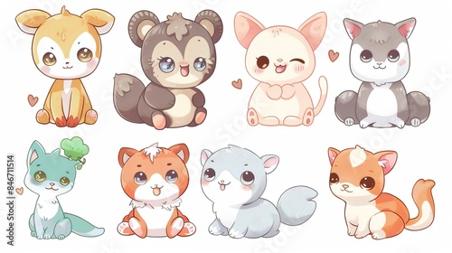 many vectors of cute kawaii baby animals, white background
