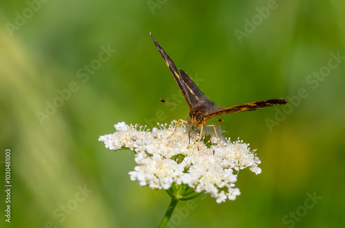 map butterfly feeding on flower, European Map, Araschnia levana