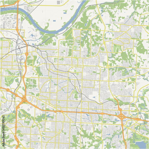 Map of Independence in Missouri in a normal road map style. Contains layered vector with roads water, parks, etc.