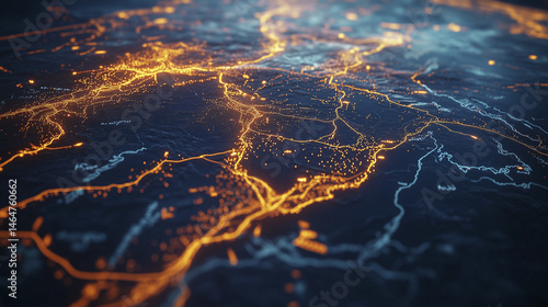 night, mountain, light, urban, infrastructure, road, terrain, rugged, dark, bright, contrast, landscape, aerial, view, city, network, glow, energy, technology, development, geography, topography, elevation, vale, river, coast, water, satellite, perspective, detail, pattern, structure, connectivity, civilisation, nature, human, activity, settlement, expansion, progress, modernity, innovation, engineering, mapping, exploration, discovery, observation, analysis, datum
