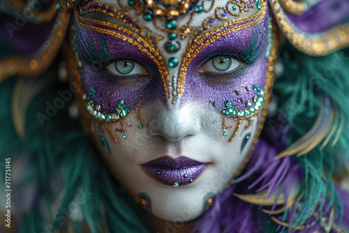 Mardi Gras Masked Marvel: Purple, Green, and Gold Face Paint Generative AI