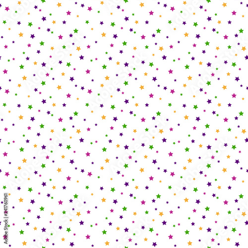 Mardi Gras Stars Seamless Pattern - Confetti stars in yellow, green, purple, and magenta on white background