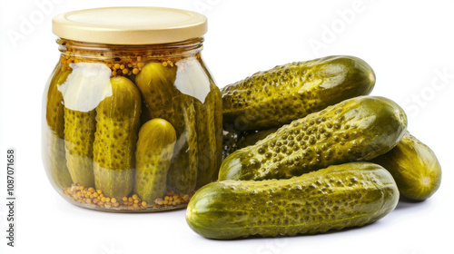 Marinated cucumbers, pickled gherkins isolated on white background