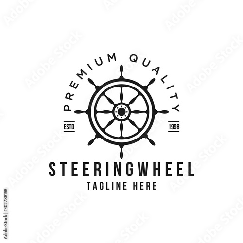 Marine retro emblems steering wheel vector logo design template