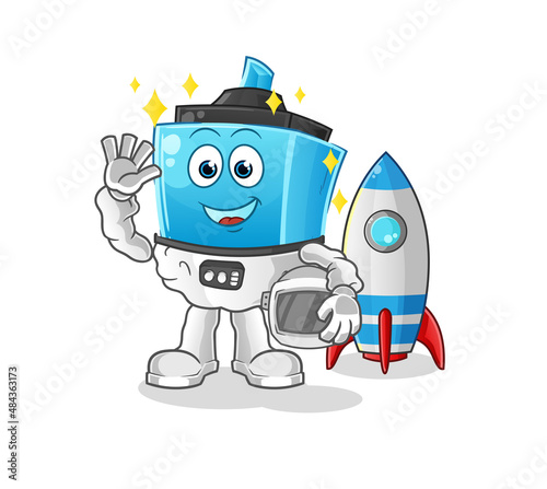 marker pen astronaut waving character. cartoon mascot vector