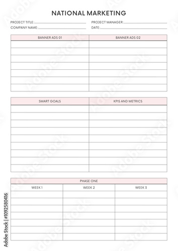 Marketing Planning Page Planner Sheets for Efficiently Organizing, Tracking, and Managing Marketing Activities, Campaigns, Strategies, Goals, and Performance Across Multiple Channels and Platforms Pag