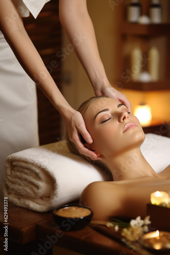 Masseur doing massage on womanin the luxury spa salon. Beauty treatment and procedure concept. Generative ai
