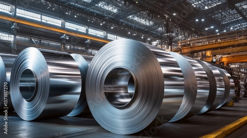 Massive aluminum rolls are showcased in detailed view while in storage, illustrating the meticulous organization of metal materials throughout the plant