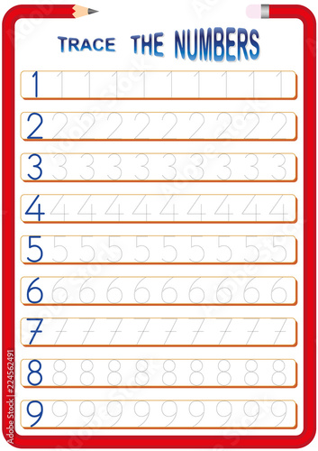 math worksheet for kindergarten kids, tracing the numbers, learning the numbers