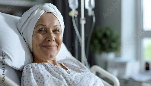 Mature woman after chemotherapy in clinic