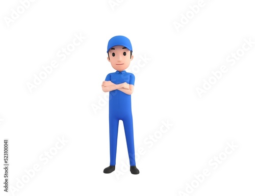 three-dimensional, character, mechanic, service, leadership, camera, job, joy, professional, work, lifestyle, attractive, business, photogenic, happy, cross, arm, look, self, proud, gesture, hand, confident, good, success, cool, pose, standing, present, uniform, man, blue, plumber, fix, men at work, occupation, maintenance, cartoon, rendering, advertisement, animation, white background, stylised, isolated, illustration, body, cute, art