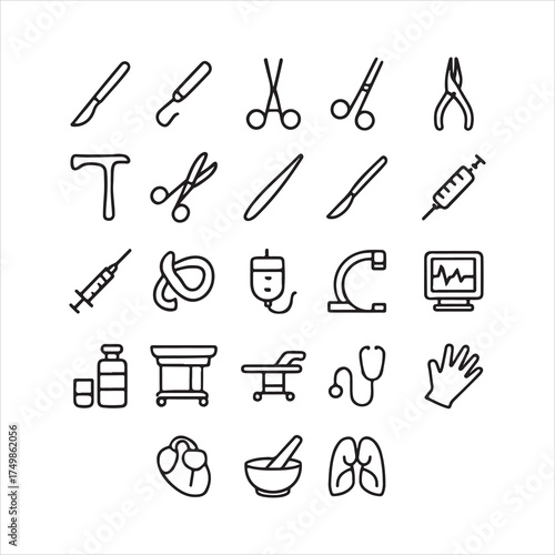 Medical equipment line icons.