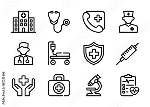 Medical icons representing healthcare services and equipment in a minimalist style design Vector