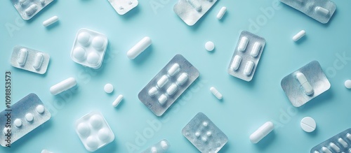 pill, tablet, medicine, pharmacy, health care, medicals, drug, pharmaceutical, capsule, treatment, health, therapy, dosage, medication, prescription, vitamin, supplement, blue, background, pattern, topview, white, cardboard box, blister, pack, drugged, clinical, chemist's shop, care, wellness, body, light blue, pharmaceutical, tablet, pill, capsule