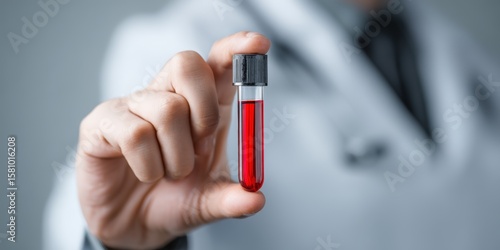 Medical Professional Holding Test Tube with Blood Sample in Lab Setting