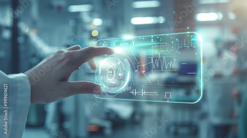Medical technology combined with patient care, with high-tech medical equipment, displaying real-time health information, modern healthcare.