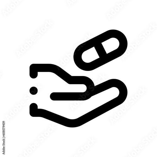 medicine, capsule, pill, treatment, hand, icon, line, linear, outline, graphic, illustration