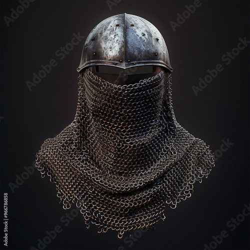 Medieval Steel Helmet with Chainmail Neck Guard
