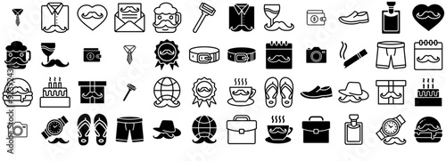 Mega Set Of Vector Father Day Isolated Silhouette Solid Icons With Celebrate,Father-Day,Fathers-Day,Celebration,Moustache Vector Illustration Linear Pictogram Pack