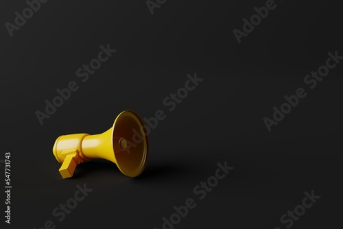 Megaphone on background. Concept of providing information, news. Business, Finance and Sociology. 3d rendering, 3d illustration.