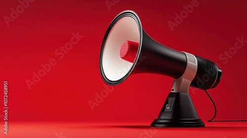 megaphone, black, red background, announcement, bold, loudspeaker, minimal, isolated, communication, attention, broadcast, power, alert, contrast, simplicity, striking, classic, speaker, sound, bright red, marketing, sharpened, isolated object, activism, advertisement, statement, energetic, modern, authority