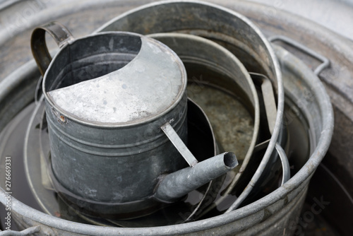 metallic, aged, milk, steel, can, container, kitchen, pot, cooking, antique, vintage, bucket, cup, tin, object, water, stove, aluminium, pan, beer, food, barrel, traditional, construction, camping, pot, watering can, garden, tub, zink, retro, background, work, gardening, hobby, recreation, pour, keep, used, used, prepare, plan