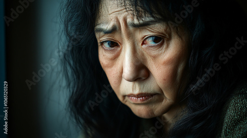 Melancholic Japanese woman with a sad expression
