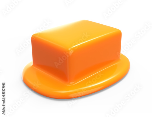 Melted caramel cube. Isolated on white background. Clipping path. 3d illustration