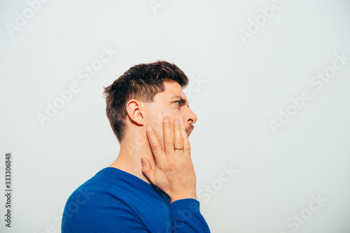 people, person, facial, problem, distraught, eye, pain, human, despair, emotional, teeth, toothache, expression, unwell, adult, stress, pushing, male, touching, teeth, injury, closeup, medicine, dental, portrait, displeased, lifestyle, healthy, young, holding, care, standing, body, man, physical, mouth, disease, real, lifestyle, worried, space, health, indoor, sorrowful, health care, negativity, uncomfortable, idea