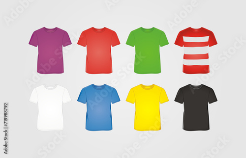 Men's t-shirt mockup, Set of colored t-shirts templates design, vector illustration
