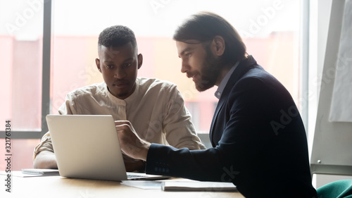 african, american, black, ethnicity, mixed, race, diverse, man, people, person, concept, business, businessman, employee, colleague, client, consulting, meeting, intern, applicant, mentor, coach, together, 2, work, office, laptop, computer, technology, project, trainee, analysis, talk, negotiate, help, support, service, assistant, conversation, financial, app, staff, collaboration, research, presentation, co-worker, training, pointing, screen