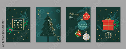 christmas, merry, new, year, 2026, happy, season, greeting, vector, card, set, christmas, ball, tree, tree branch, gift, snowflake, text, background, modern, design, illustration, season, banner, gold, confetti, snow, holly, berry, lettering, poster, shiny, cover, celebration, invitation, abstract, gold, template, social, media, merry christmas, symbol, trendy, christmas bauble, concept, christmas tree, green