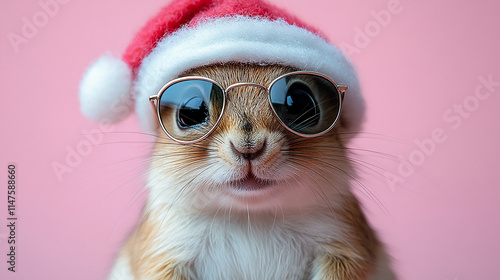 christmas, merry christmas, dog, santa, animal, santa, sunglasses, red hat, isolated, background, cool, greeting card, holiday, french, concept, pet, winter, card, greeting, merry, happy, season, celebration, celebrate, festive, december, cute, funny, portrait, head, studio, puppy, sitting, seasonal, costume, goggles, chameleon, reptile, cap, pink