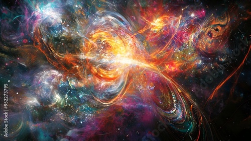 Mesmerizing Cosmic Explosion with Vibrant Swirling Energies and Celestial Patterns