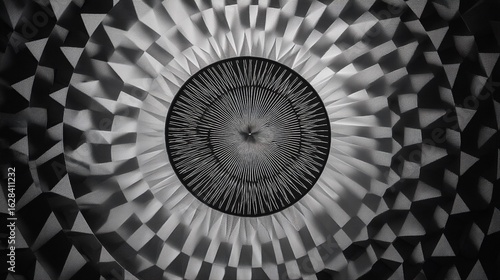 Mesmerizing optical illusion geometric patterns with precise mathematical repetition creating visual depth