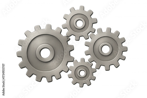 Metal gears and cogs connecting, representing teamwork, process, and industrial engineering system, transparent background