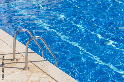 ladder, blue, water, summer, pool, nobody, hotel, swimming, resort, relaxation, wet, leisure, spa, clean, luxury, poolside, floor, vacation, edge, steel, travel, sport, recreation, swim, architecture, metal, tile