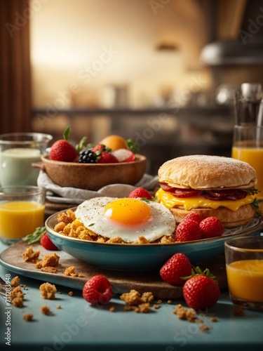 breakfast, premium, eatery, hotel, studio, lighting, background, cinematic
