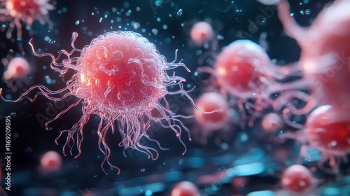 Microscopic View of Cancer Cells Biomedical Illustration Oncology Research Detailed 3D Render