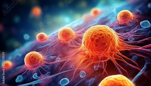 Microscopic View of Cancer Cells on a Bright Scientific Background Highlighting Cellular Abnormalities