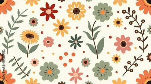 Mid Century Modern Seamless Tile Pattern with Retro Roses & Daisies
