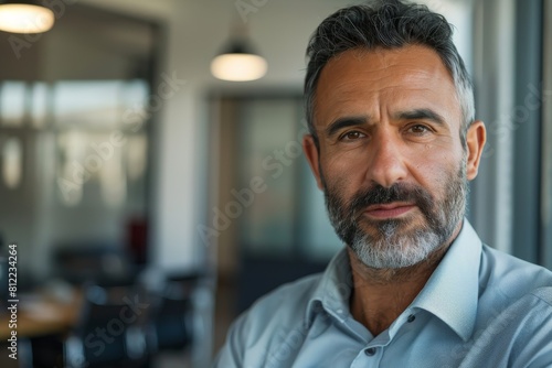 business, man, gaze, seriousness, intensity, power, professional, determined, commanding, confidence, portrait, adult, sharp, office, interior, modern, executive, manager, entrepreneur, direct, grey, shirt, sombre, sober, overlook, corporate, authority, success, workplace, stylish, smart, corporate culture, strength, life events, leadership, perseverance, discipline, resilience, focused, pose, horizontal