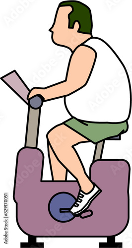 Middle-aged man riding an exercise bike