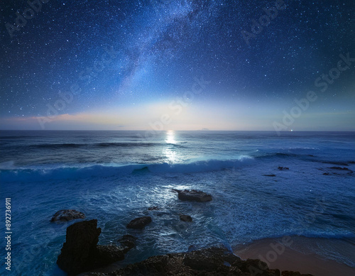 midnight, coastal, tranquil, wave, night, marin, starry sky, seascape, horizon, star, scenic, serene, tide, natural, beauty, water, peaceful, ocean, quiet, nature, beach, relaxing, illuminated